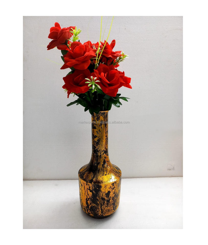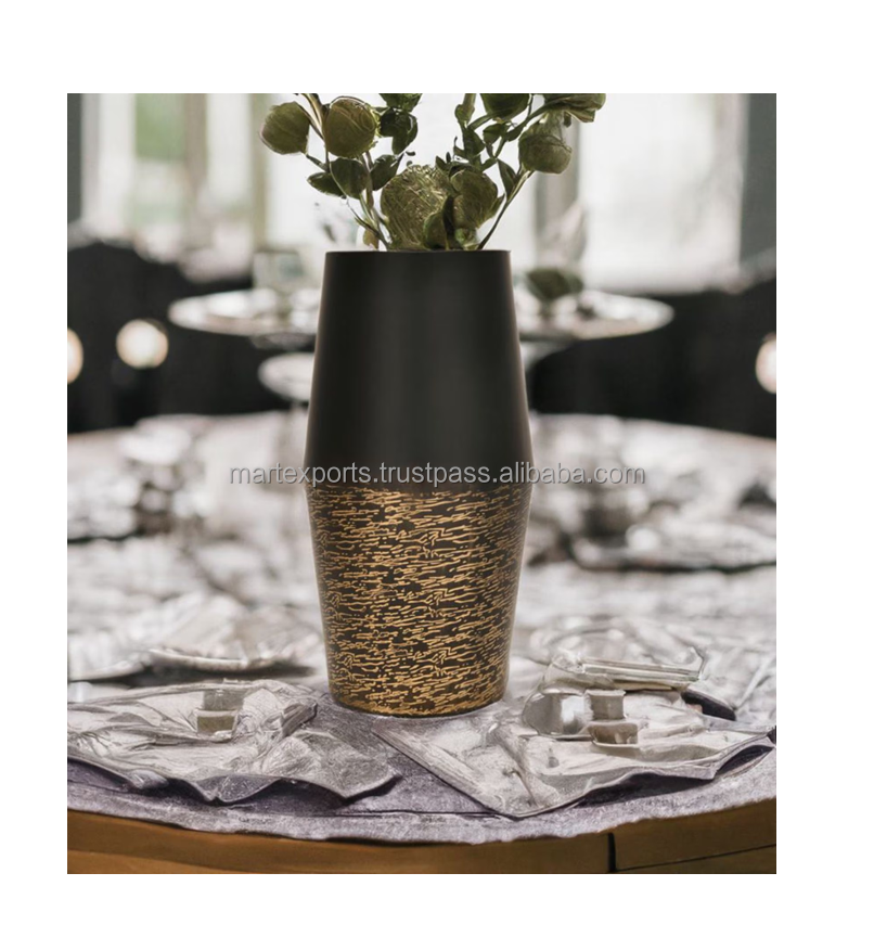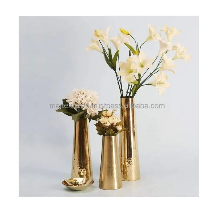 แจกันดอกไม้โลหะทองเหลืองทองแดงคุณภาพสูงทันสมัย แจกันตั้งโต๊ะดีไซน์เนอร์ สามารถปรับแต่งสีได้ สไตล์อินเดีย