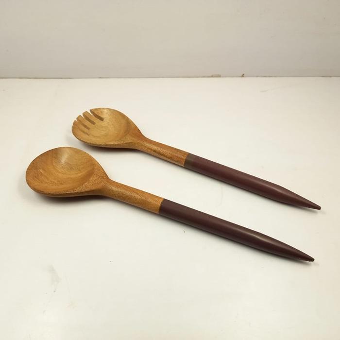 ชุดช้อนส้อมและชามไม้ขัดเงาสำหรับใช้ในครัวชุดรับประทานสลัดแบบปรับแต่งได้