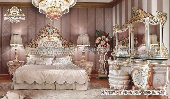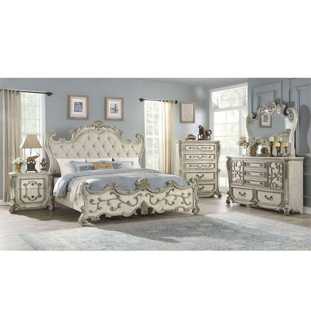 ชุดห้องนอนไม้สักเงินคุณภาพสูงทันสมัย แกะสลักด้วยมือ พร้อมเคลือบสีขาวพิเศษ ขนาดควีนไซส์