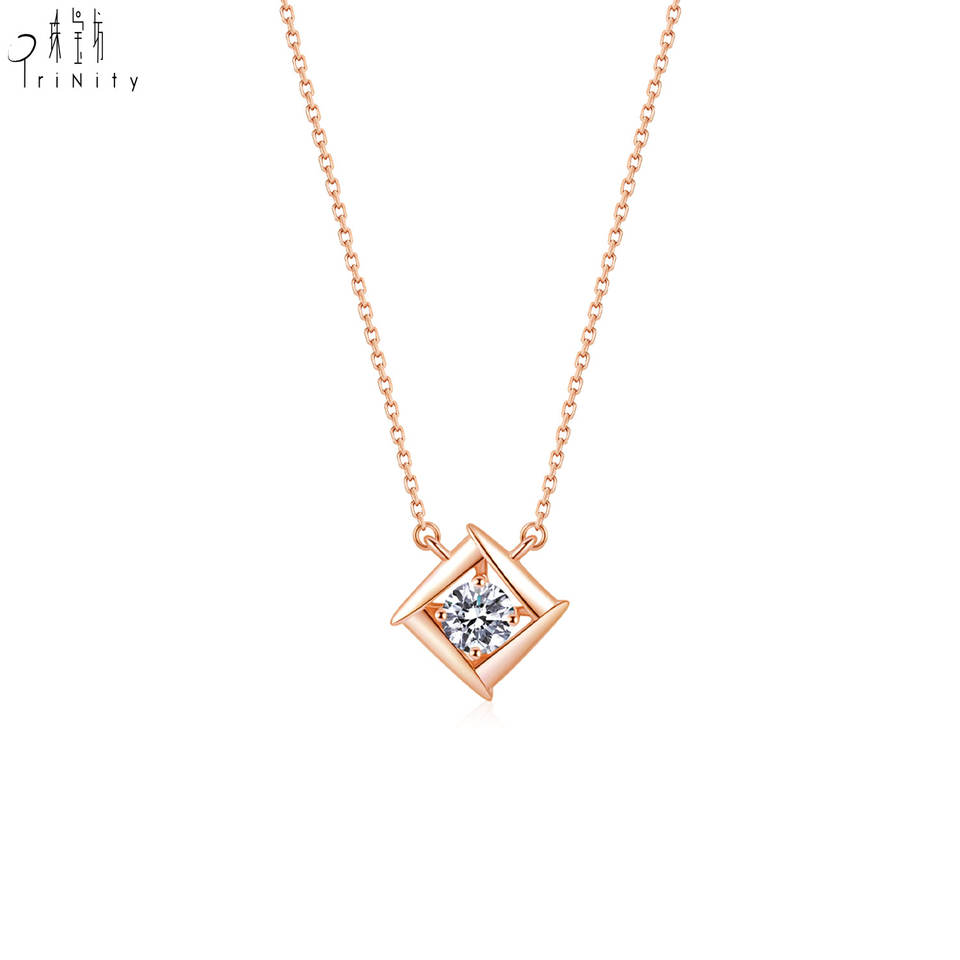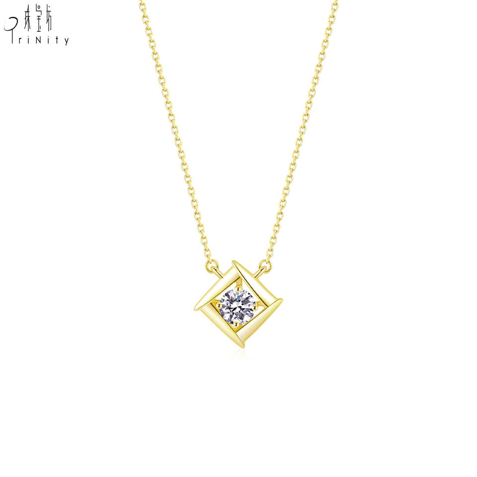 ซัพพลายเออร์ฮ่องกง เครื่องประดับสไตล์เรียบหรู ทองคำแท้ 18K เพชรแท้ธรรมชาติ จี้รูปทรงข้าวหลามตัด สร้อยคอ ของขวัญวันเกิดสำหรับผู้หญิง