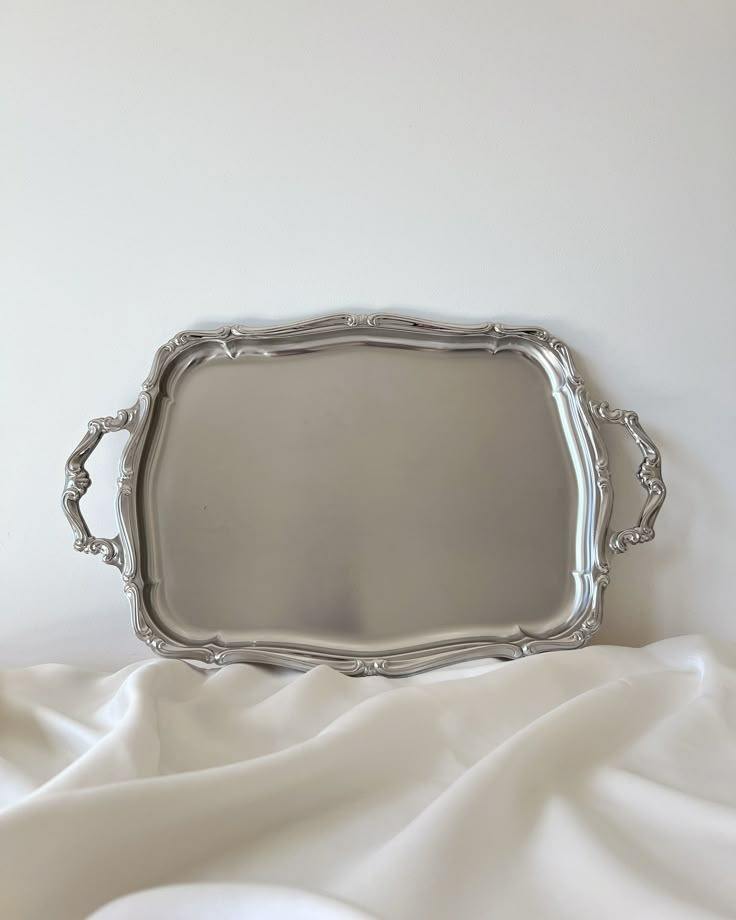 ถาดเสิร์ฟสเตนเลสสตีลทันสมัยพร้อมฐานกันลื่นและรูปแบบการตกแต่งสำหรับโรงแรมและบริการจัดเลี้ยง