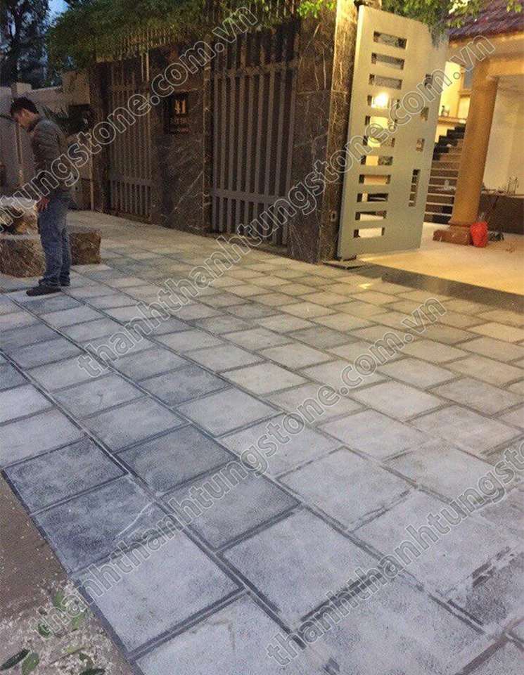 กระเบื้องหินสีน้ำเงินคุณภาพสูงแบบทันสมัย ยี่ห้อ Thanh Thanh Tung ลาย Bush-Hammered ขอบขัดเงา สำหรับตกแต่งภายนอกอาคารสำนักงาน
