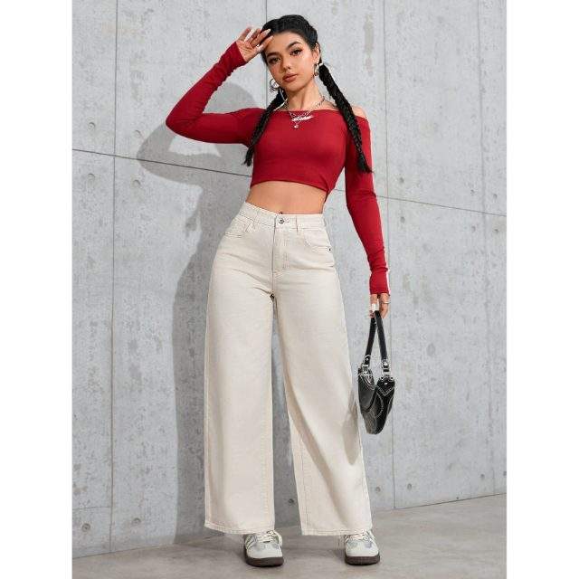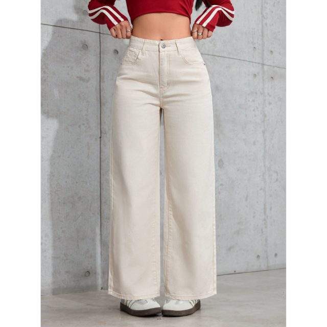 ข้อมูลจำเพาะ:Fit Type: Wide Leg / Loose Fit, Waist Type: High Waist, Fabric: Stretch Denim (Cotton + Stretch Denim), Length: Full Length (Approx. 40 inches), Closure Type: Zipper Fly with Metal Button, Pattern Type: Solid / Plain, Pocket Type: 5-Pocket Classic Design, Stitching: Double-Needle Durable Stitch, Details: Clean Look / Minimalist Finish / Premium Thread Work, Fabric Features: Soft Stretch, Eco-Friendly, Durable, Breathable, Wash Type: Enzyme Wash / Soft Finish, Usage: Casual Wear, Street Style, Daily Comfort