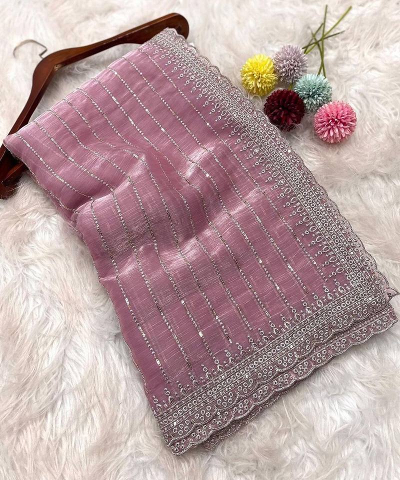 เสื้อส่าหรีออแกนซ่าคุณภาพสูงทันสมัยสำหรับผู้หญิงชุดงานแต่งงานงานปาร์ตี้ผ้าไหมผ้าจอร์เจียเป็นแรงบันดาลใจซักได้สีชมพู