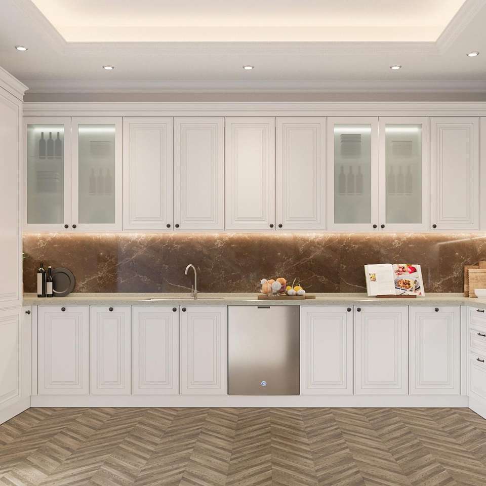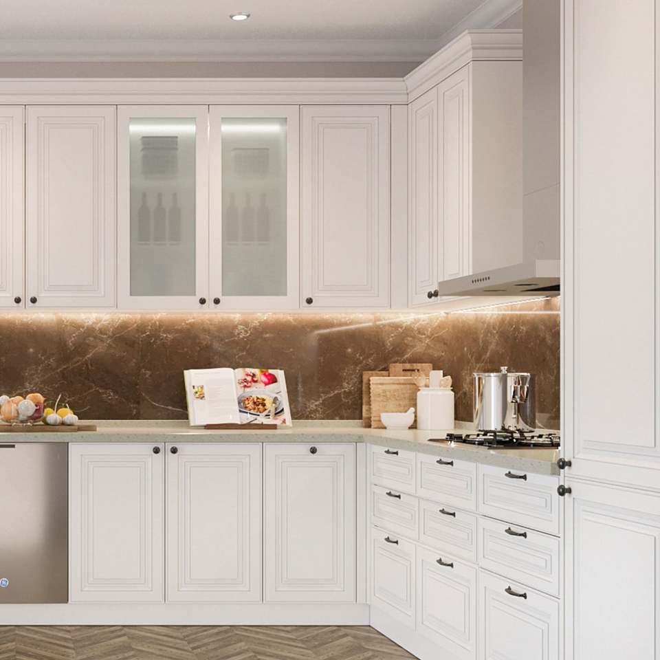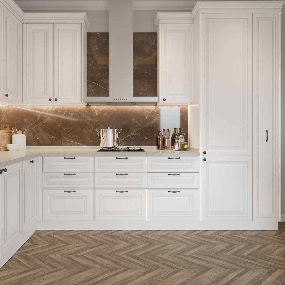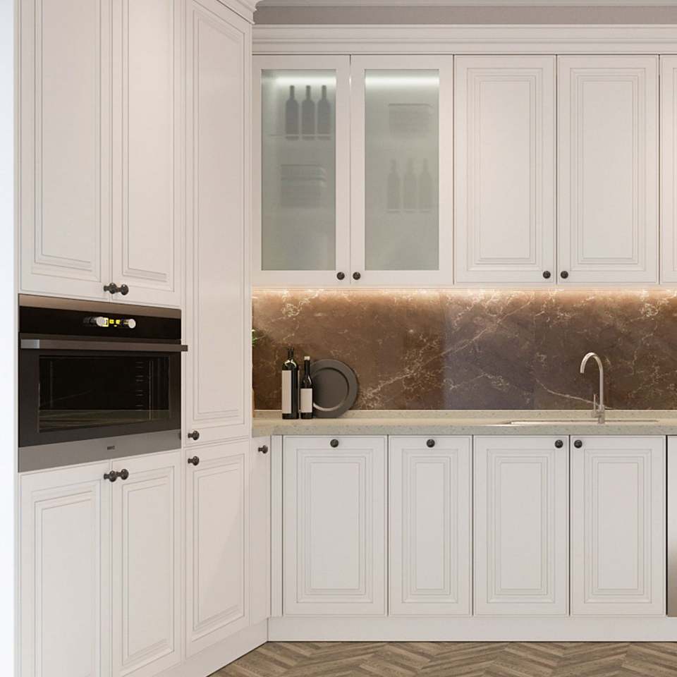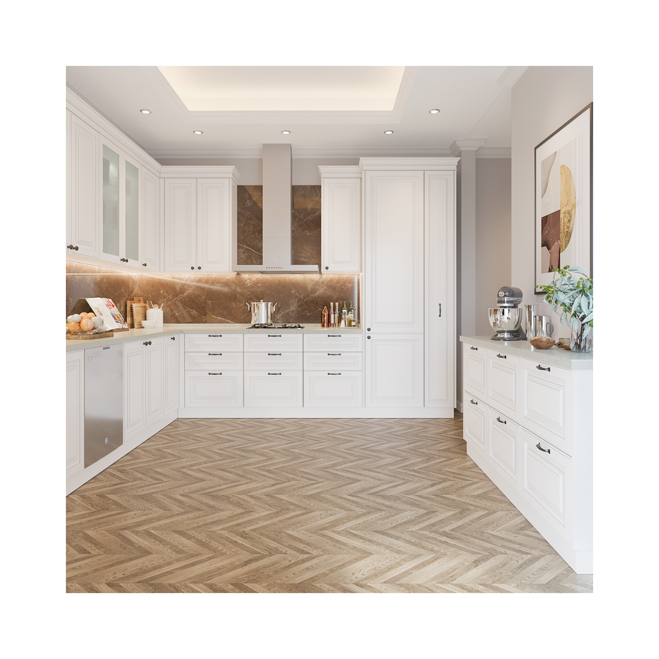 ตู้ครัวไม้เบิร์ชอเนกประสงค์คุณภาพสูงทันสมัยดีไซน์ฟรีควอตซ์/หินแกรนิตสำหรับเคาน์เตอร์