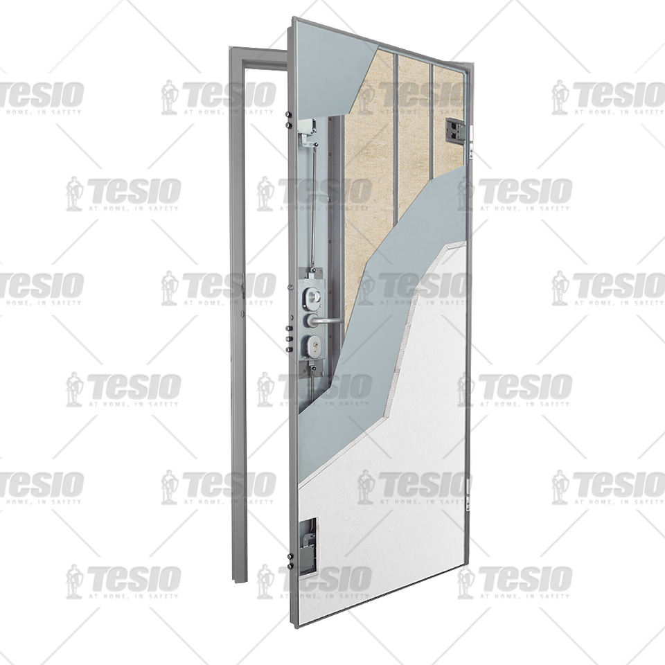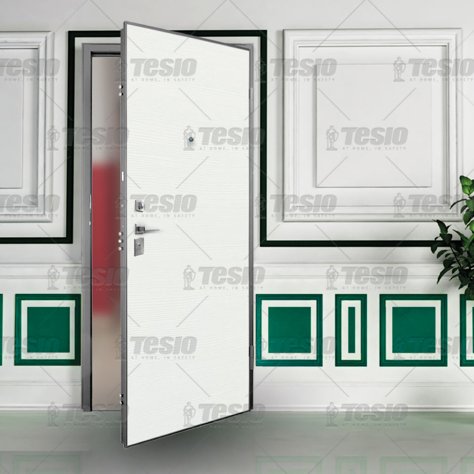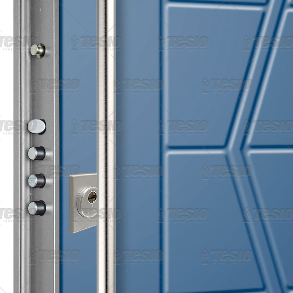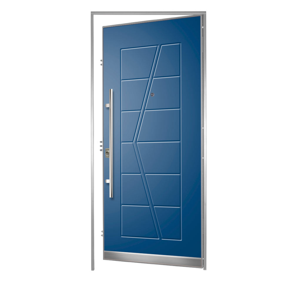 Modern Home 40 DB Sound Barrier Door Manual Bold Blue Pantographed Aluminium INC032 Crisp White Melamine Stainless Steel Fire