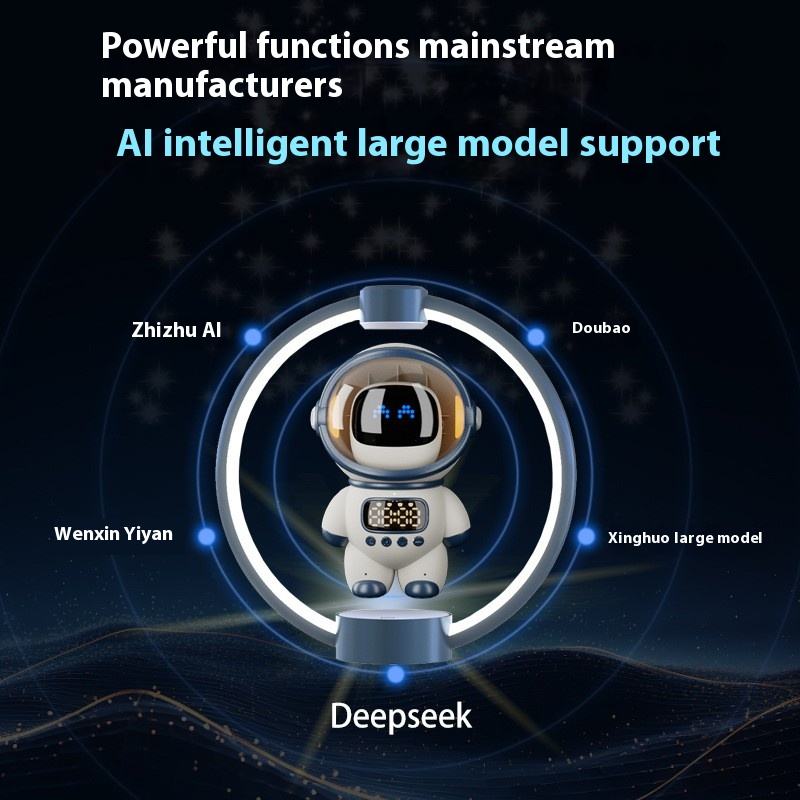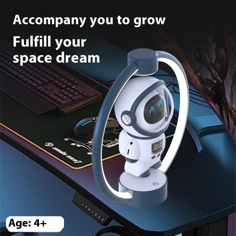 นาฬิกาปลุก LED Maglev รูปทรงบาร์บาร์ในบ้านสมัยใหม่ พร้อมลำโพงนักบินอวกาศสุดสร้างสรรค์ โคมไฟตั้งโต๊ะ สำหรับนักเรียน มาตรฐาน IP44