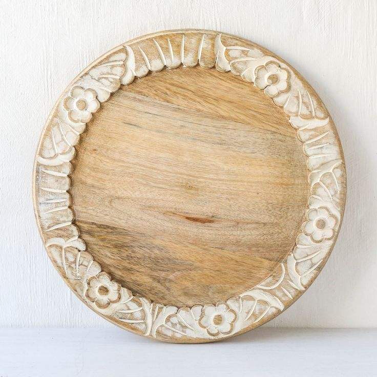 ถาดเสิร์ฟทรงกลมลายดอกไม้สำหรับตกแต่งบ้านทันสมัยถาดไม้แกะสลักทำด้วยมือสำหรับขนมผลไม้เครื่องครัวเสิร์ฟ