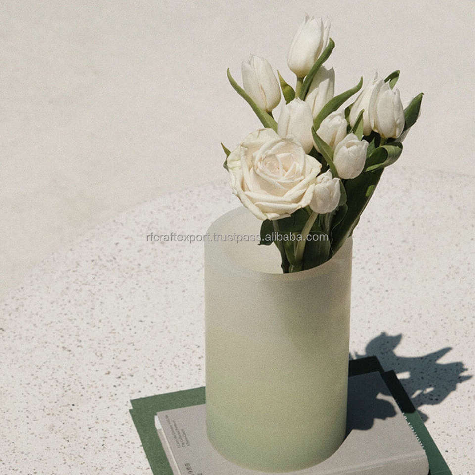 แจกันดอกไม้พื้นทำจากเรซินเส้นตรงสำหรับตกแต่งบ้านสมัยใหม่