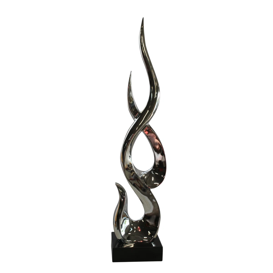 รูปปั้นไฟสำเร็จรูปสีเงินตกแต่งบ้านแบบทันสมัยรูปปั้นโลหะแบบนามธรรมพร้อมฐานไม้สีดำตามสั่ง