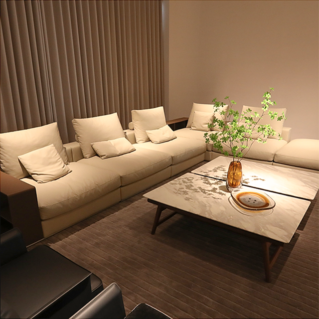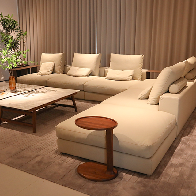 ชุดโซฟาห้องนั่งเล่นรูปตัว L หรูหราทันสมัยโซฟาหนังผ้าตัดเข้ามุมวิลล่า