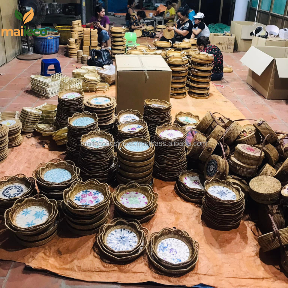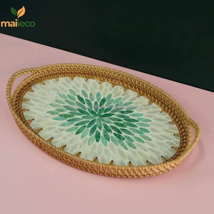 ถาดเคลือบเงาหวายทรงรีทำด้วยมือสำหรับใช้ในครัวเรือนสมัยใหม่สำหรับใช้ในครัวครัวผลไม้ชาขนมคุณแม่ประดับมุก