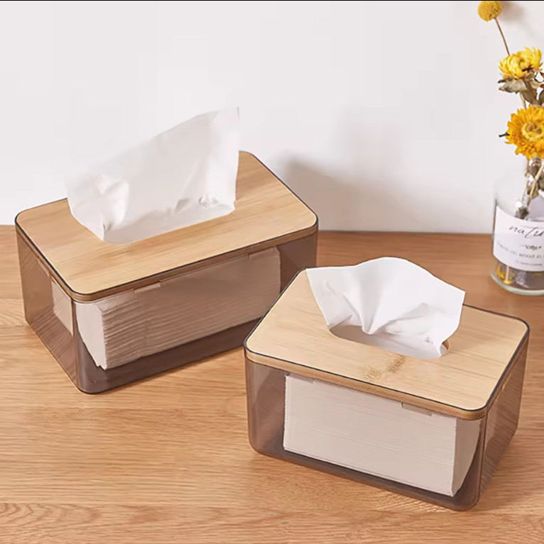 ชื่อผลิตภัณฑ์:กล่องใส่ทิชชู่พร้อมฝาไม้ไผ่ทิชชู่พลาสติกใส