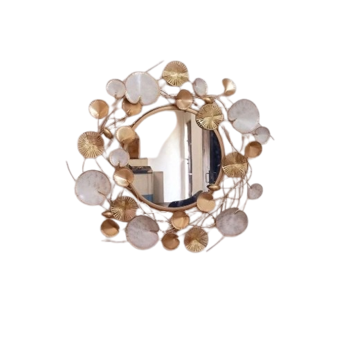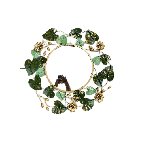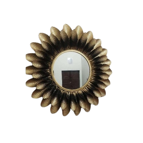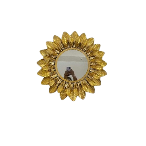 กระจกกรอบโลหะสำหรับตกแต่งบ้านและห้องนั่งเล่นทันสมัยกระจกสีทองหรูหราพร้อมกระจกติดผนังดีไซน์ดอกทานตะวัน