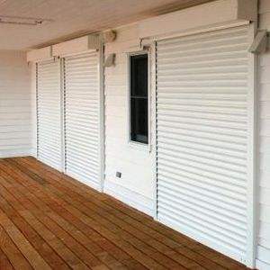 มู่ลี่เวนิสพีวีซีสีขาวครีมขนาด60x180ซม. มู่ลี่ม้วนกลางแจ้งมีมอเตอร์ติดตั้งในตัวสำหรับหน้าต่างตัวอย่างฟรี