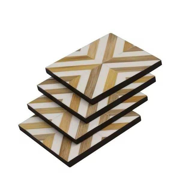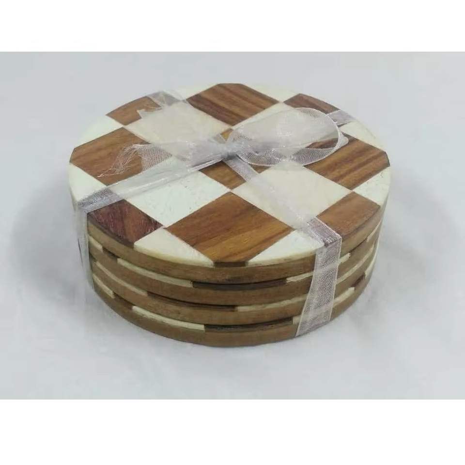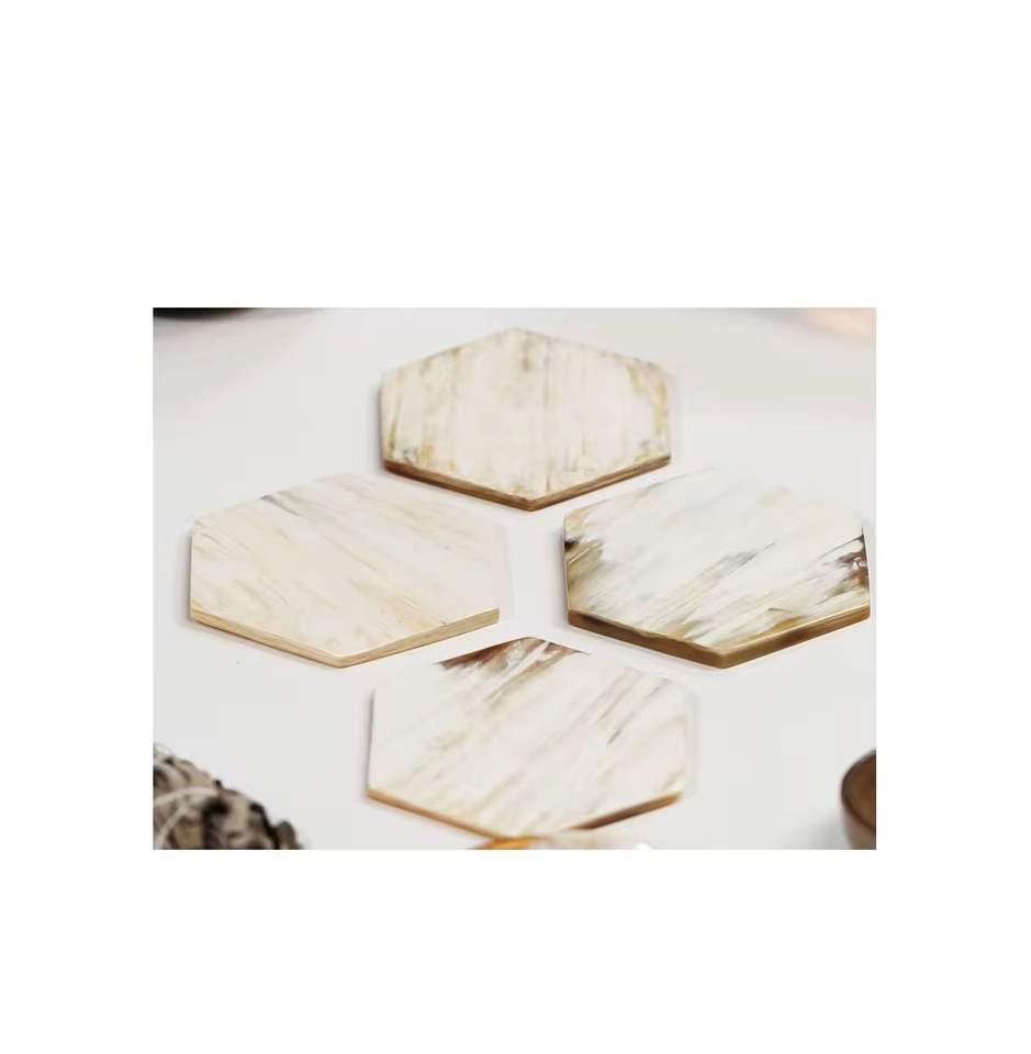 แผ่นรองจานสีขาวฮอร์นแบบทันสมัยถาดรองแก้วดีไซน์ลายตารางหมากรุกสำหรับรูปทรงหกเหลี่ยมสำหรับงานแฮนด์เมด