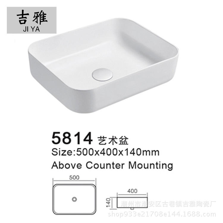 อ่างล้างหน้าเซรามิกแบบเดี่ยวทรงสี่เหลี่ยม5814อ่างล้างหน้าแบบตั้งเดี่ยวสำหรับโรงแรม