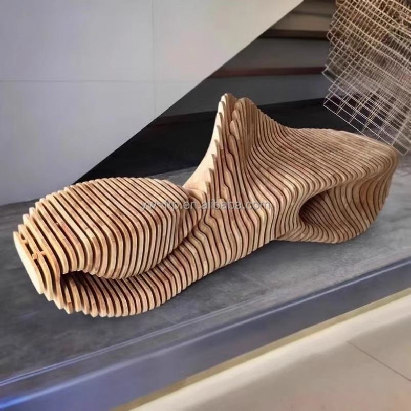 ม้านั่งในห้องรอที่นั่งเลานจ์ทำจากไม้พาราเมตริก