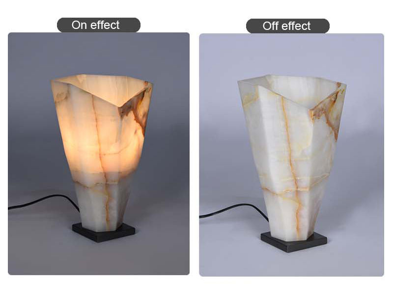 โคมไฟตั้งโต๊ะหยกทรงเรขาคณิต ดีไซน์ทันสมัย เป็นมิตรกับสิ่งแวดล้อม ใช้หลอดไฟ LED หินธรรมชาติ เหมาะสำหรับห้องนอนโรงแรม