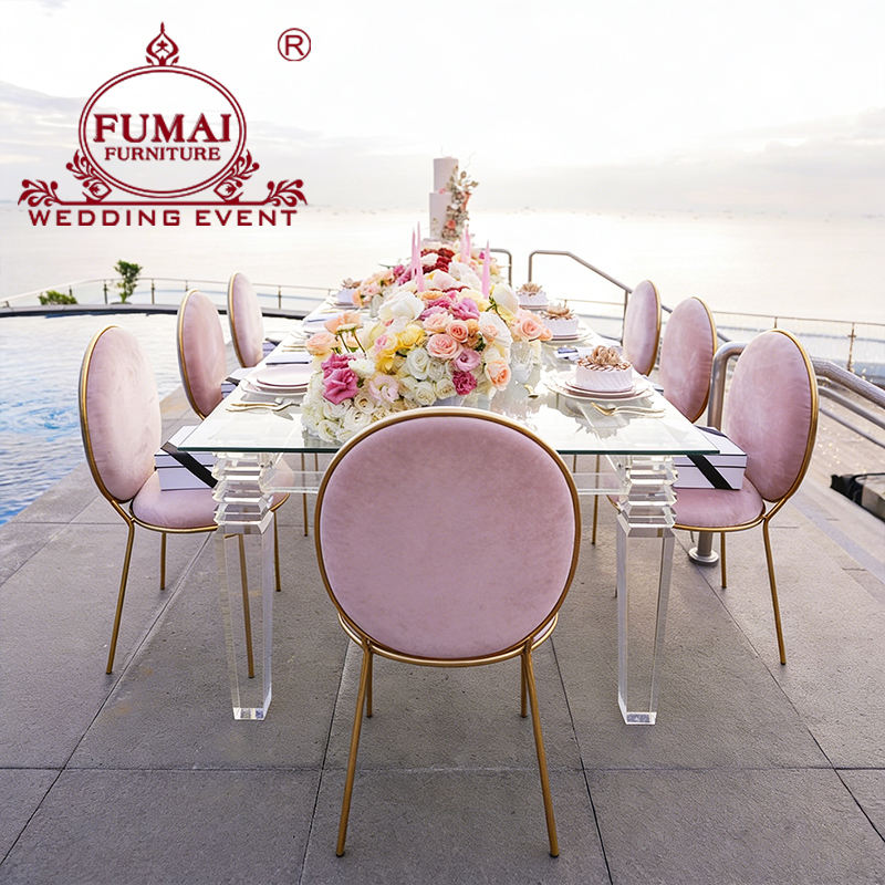 โต๊ะรับประทานอาหารอะคริลิคใสทรงสี่เหลี่ยมผืนผ้าเฟอร์นิเจอร์จัดงานแต่งงานงานปาร์ตี้ของโรงแรมที่ทันสมัย