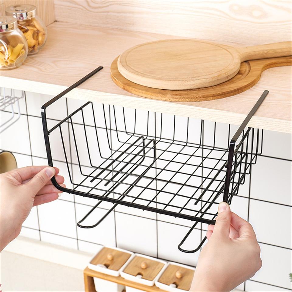 Modern Hotel Wall-Mounted Metal Storage Rack for Kitchen Cabinet with Hanging Basket and Compartment-Eco-Friendly