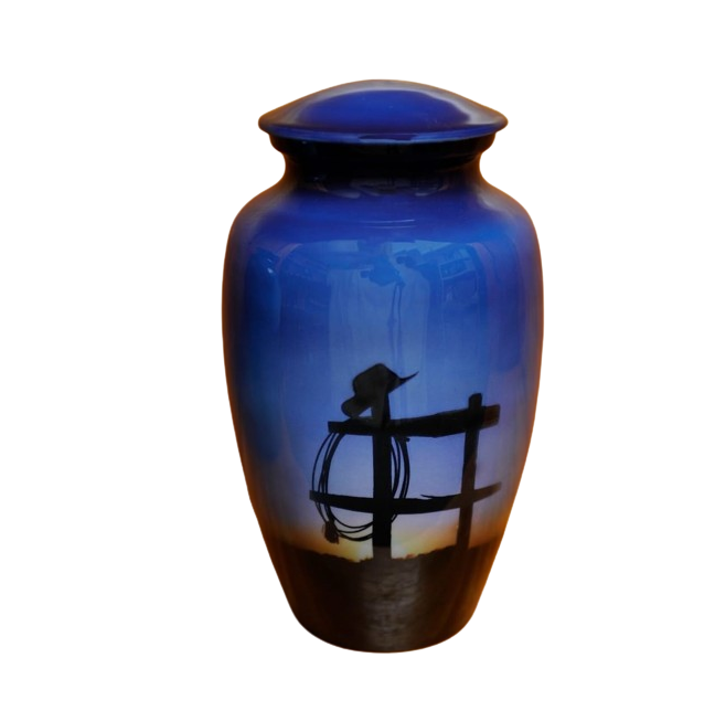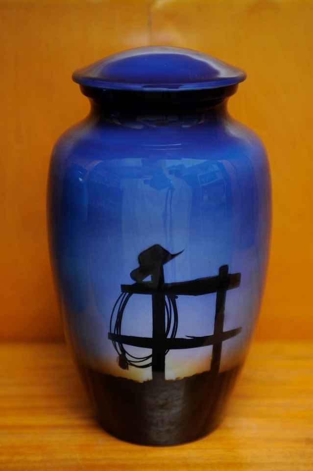 โกศบรรจุอัฐิรูปทรงคาวบอยธีมการเดินทางครั้งสุดท้าย สำหรับเผาศพมนุษย์ ทำจากอะลูมิเนียมรักษ์โลก