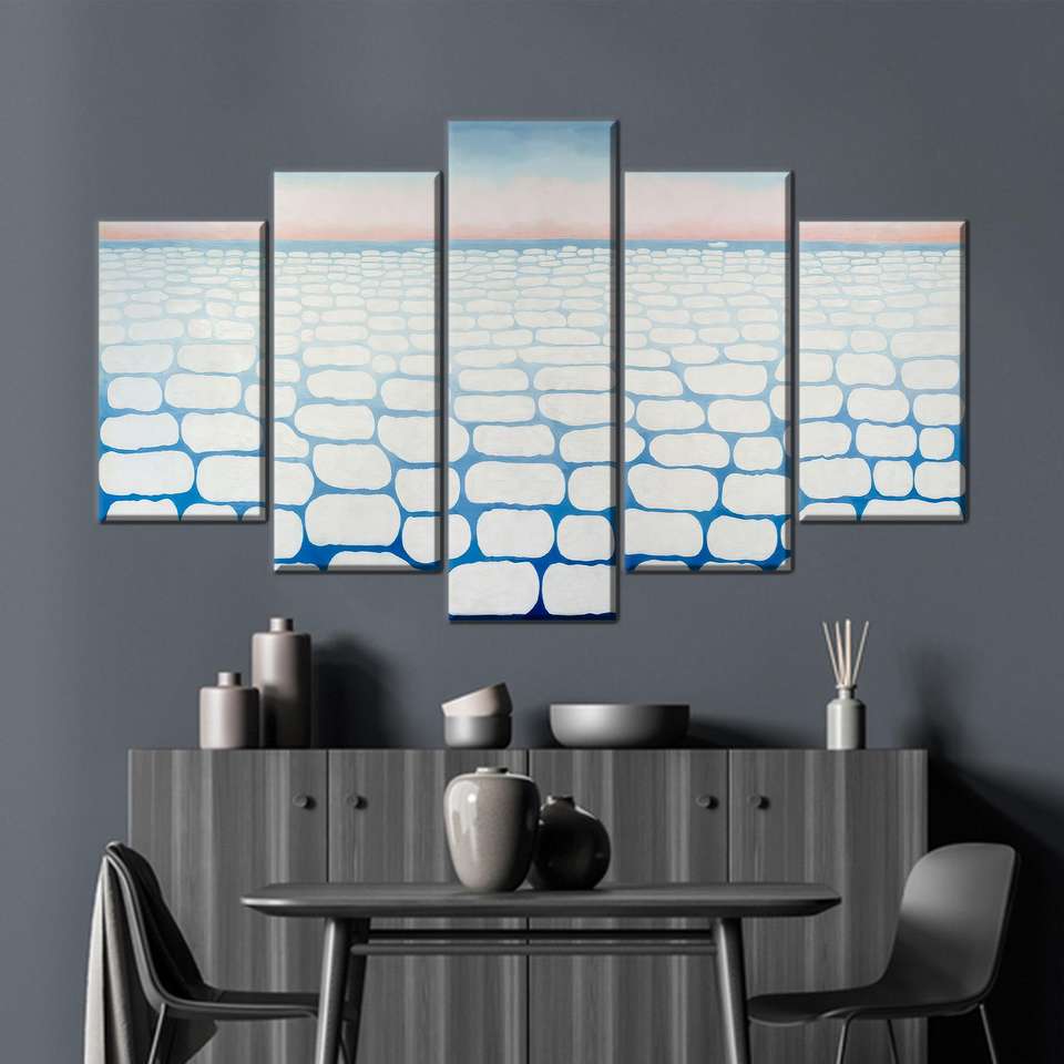 ศิลปะบนผืนผ้าใบลายน้ำแข็งสมัยใหม่: ภาพพิมพ์ภูมิทัศน์ฤดูหนาวแบบนามธรรม, ชุด 5 ชิ้น: ภาพพิมพ์แบบห่อหุ้ม