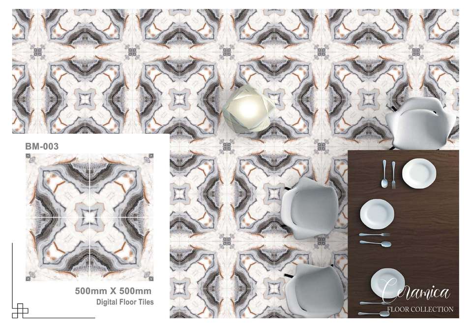 กระเบื้องปูพื้นเซรามิกดิจิตอลอินเดียที่ทันสมัยขนาด500x500มม. เคลือบเงาทึบป้องกันแบคทีเรียสำหรับใช้ภายในห้องและอพาร์ตเมนต์