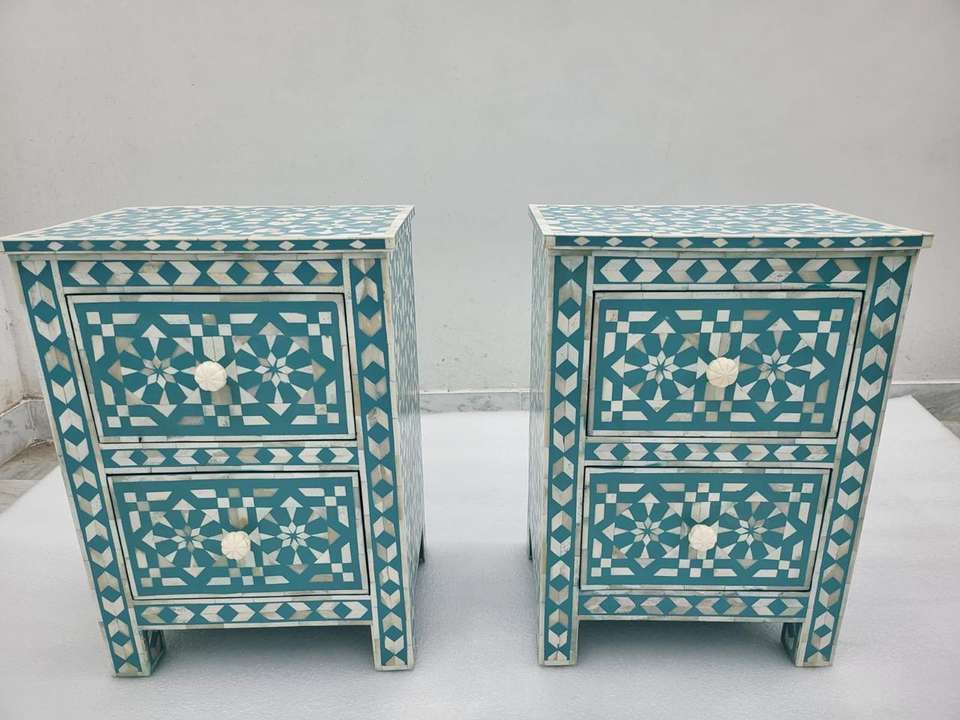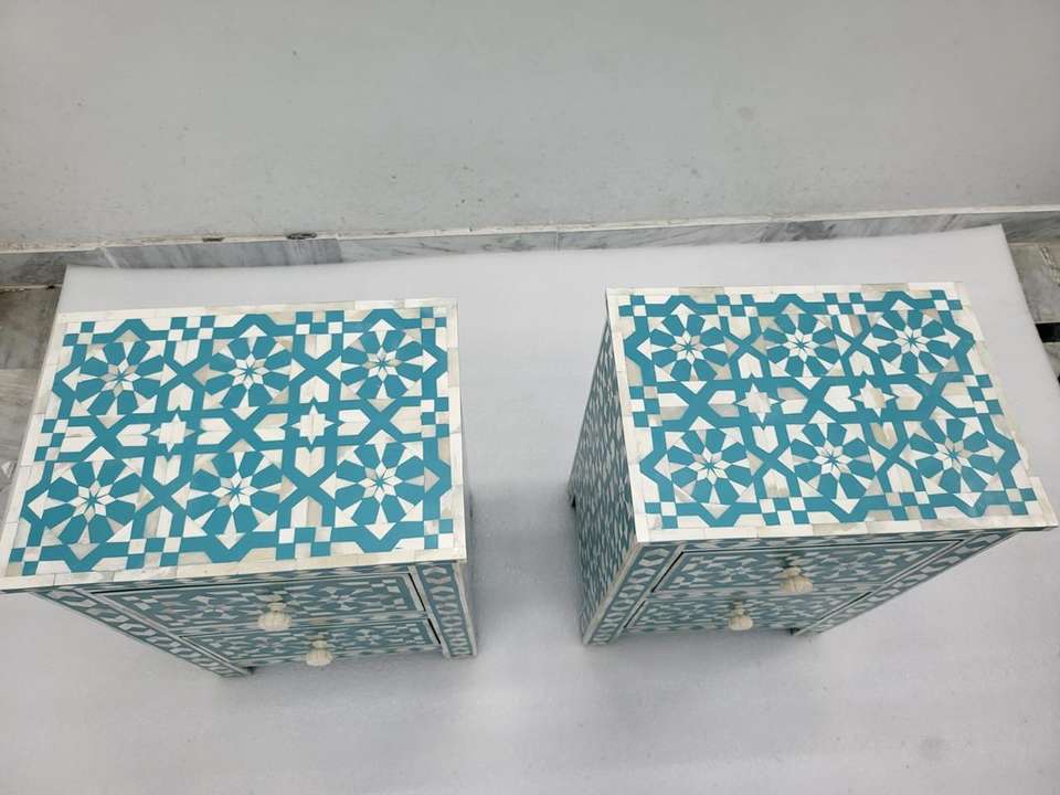 ตู้เก็บของห้องนั่งเล่นสไตล์อินเดียสมัยใหม่ ประดับด้วยงานฝังกระดูกไม้ พร้อมลิ้นชัก 3 ชั้น งานฝีมือ เฟอร์นิเจอร์ตกแต่งบ้าน งานเรซิ่นจากอินเดีย
