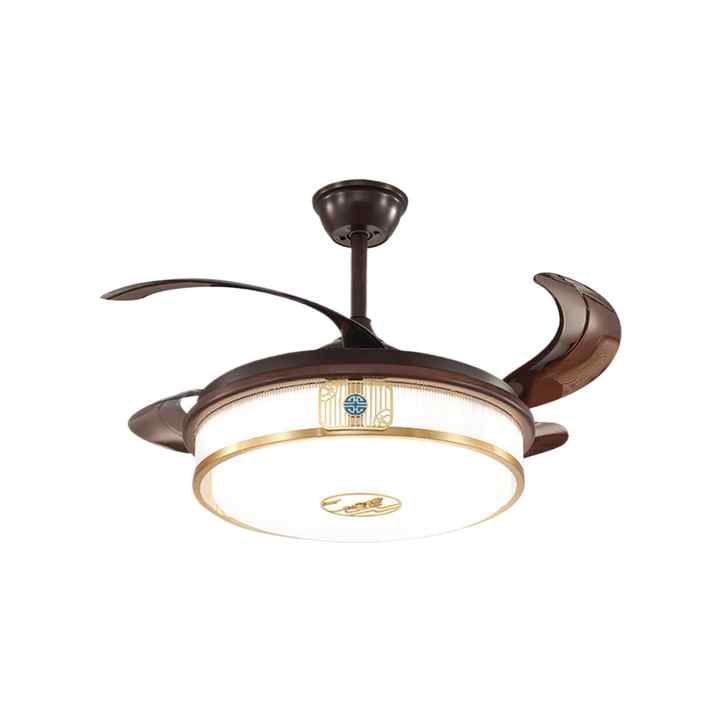 Modern Indoor LED Chandelier Black Invisible Retractable for Music AC Power Ceiling Fan Lamp Living Room Remote Control