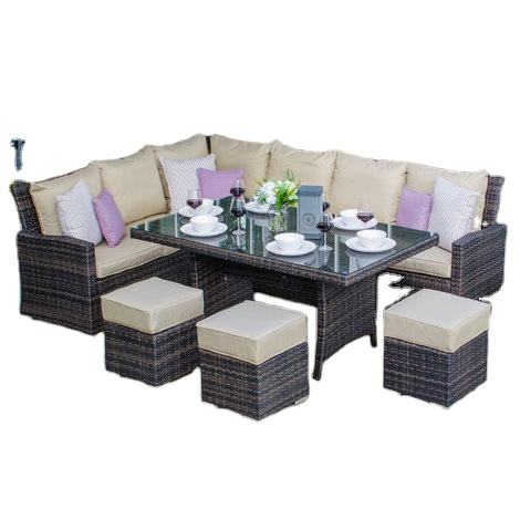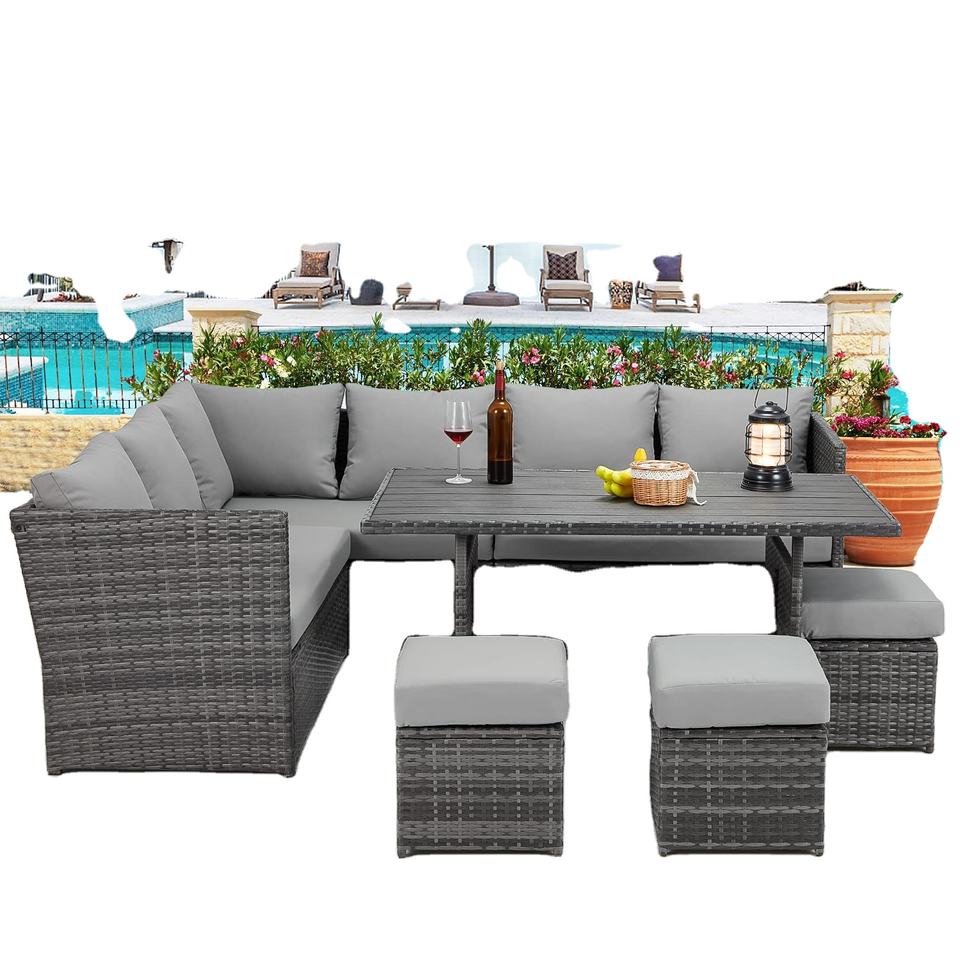 เฟอร์นิเจอร์หวายโพลีหวายสังเคราะห์สำหรับรับประทานอาหารในร่มและกลางแจ้งที่ทันสมัยสำหรับลานสวน