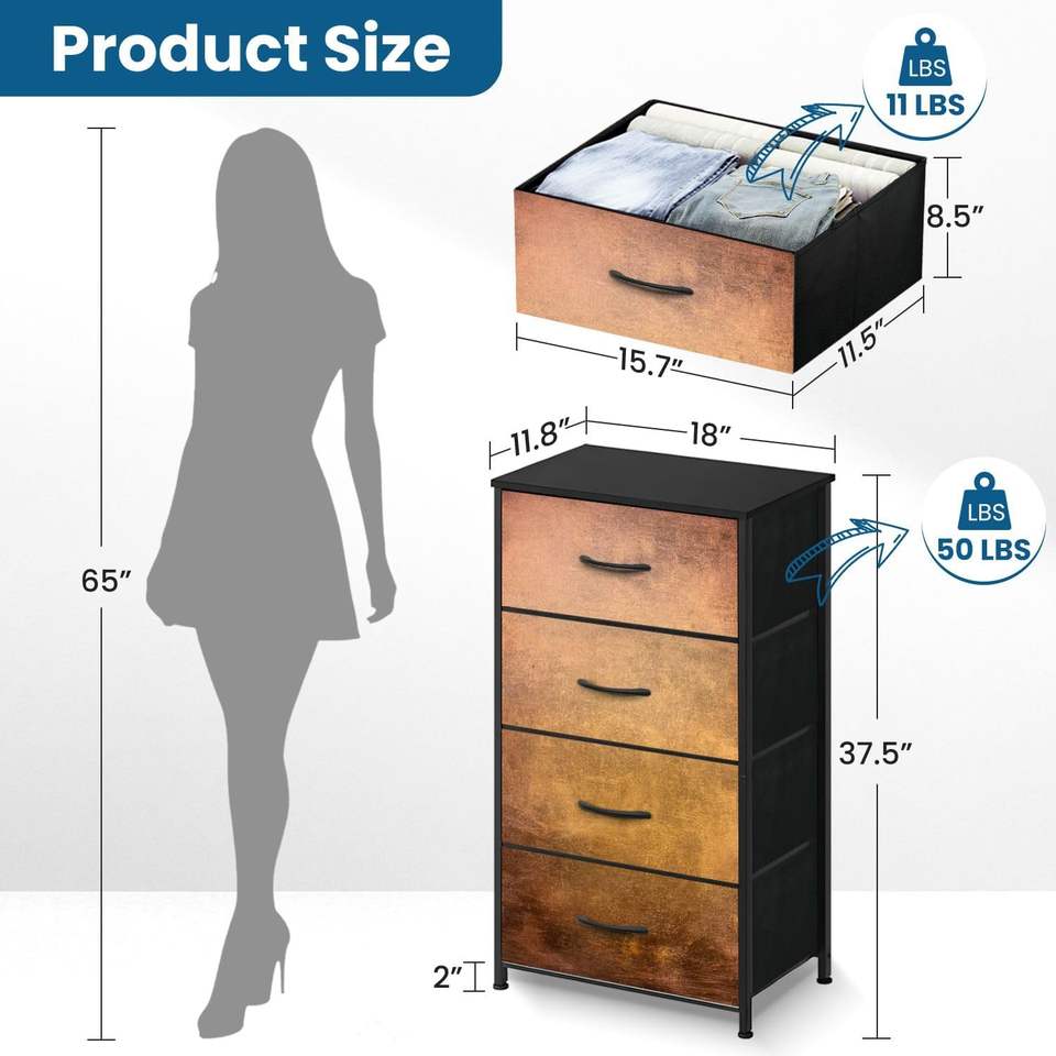 Modern Industrial 4-Drawer Dresser with Gray Concrete Wall Texture Metal and MDF Wood for Home Decor in Living Room & Bedroom