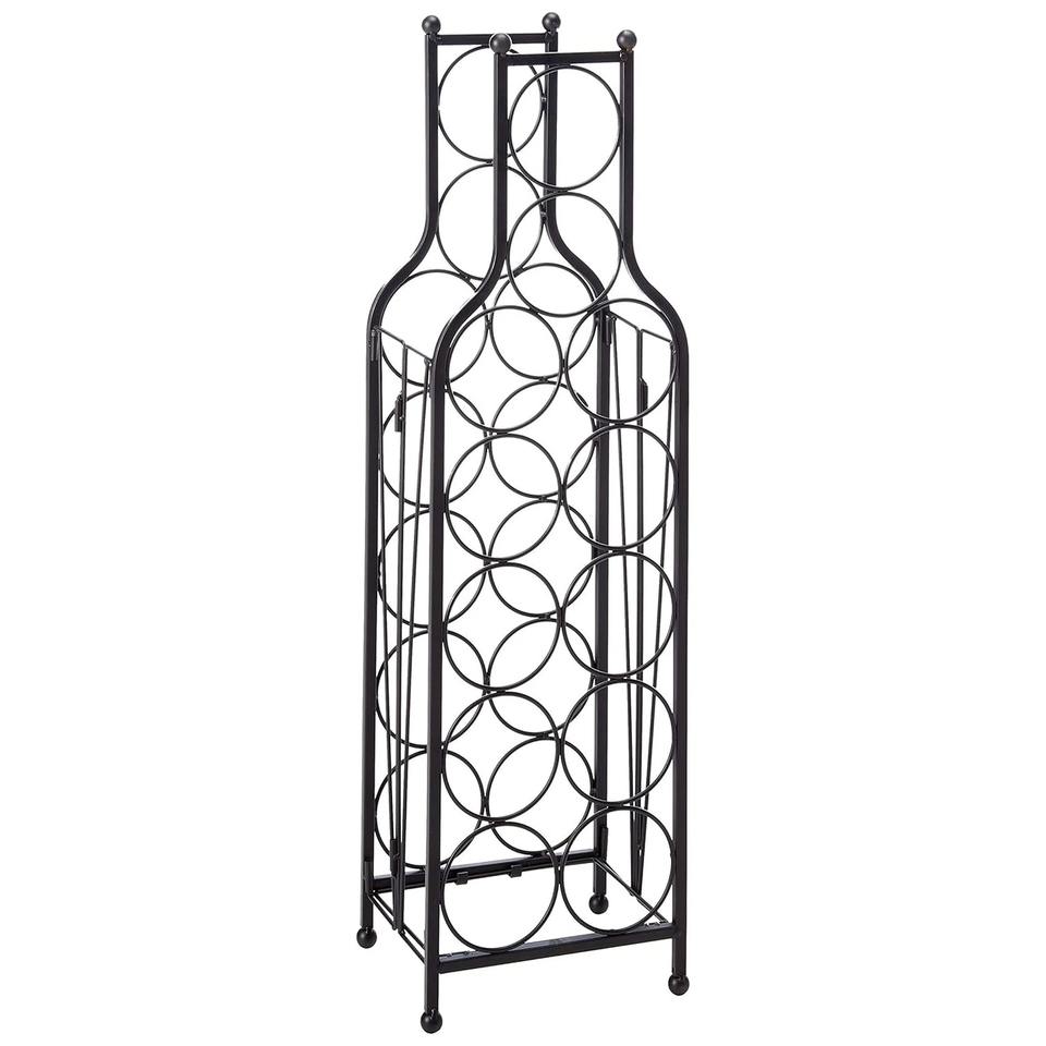 ชั้นวางไวน์เหล็กสีดำสไตล์อินดัสเทรียลสมัยใหม่ 3 ชั้น สำหรับ 12 ขวด แบบวางบนโต๊ะ สามารถวางซ้อนกันได้ ความจุ 3 ลิตร พร้อมล้อเลื่อนสำหรับจัดเก็บบนเคาน์เตอร์