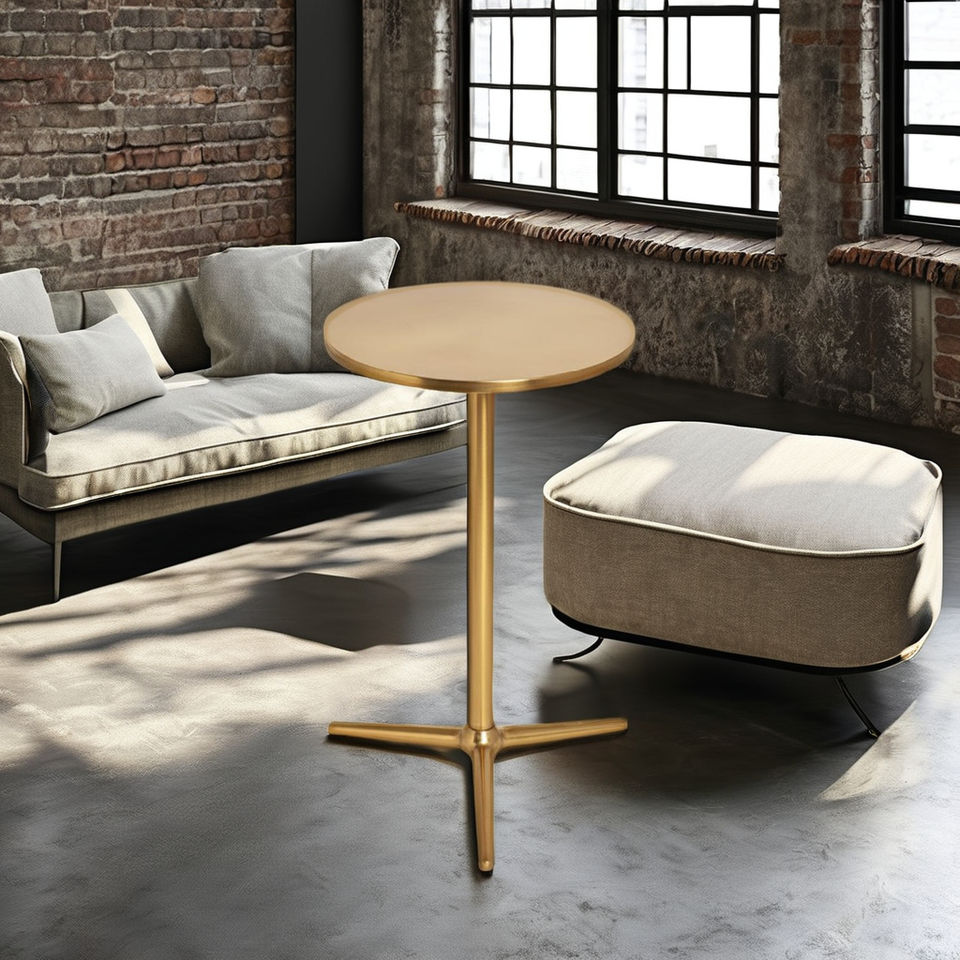 โต๊ะข้างเครื่องดื่มโลหะสีดำแนวอุตสาหกรรมทันสมัยโต๊ะกาแฟพร้อมฐานขาตั้งกล้องแบบเรียบง่ายปลายเล็กกลางแจ้งในร่ม