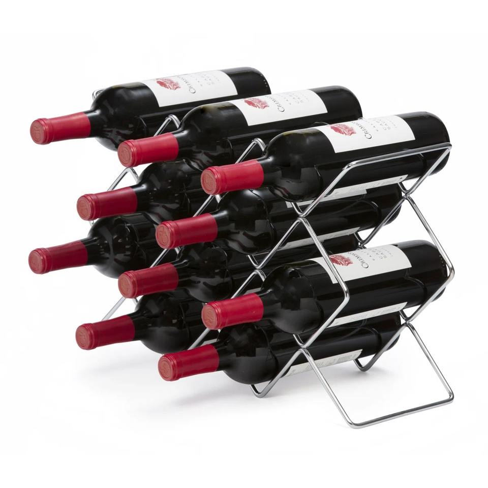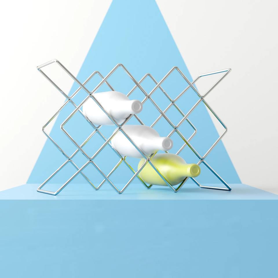 Modern Industrial Black Metal Square Wheeled Portable Eco-Friendly 3L Tabletop Wine Rack Geometric Iron Frame Contemporary Wine