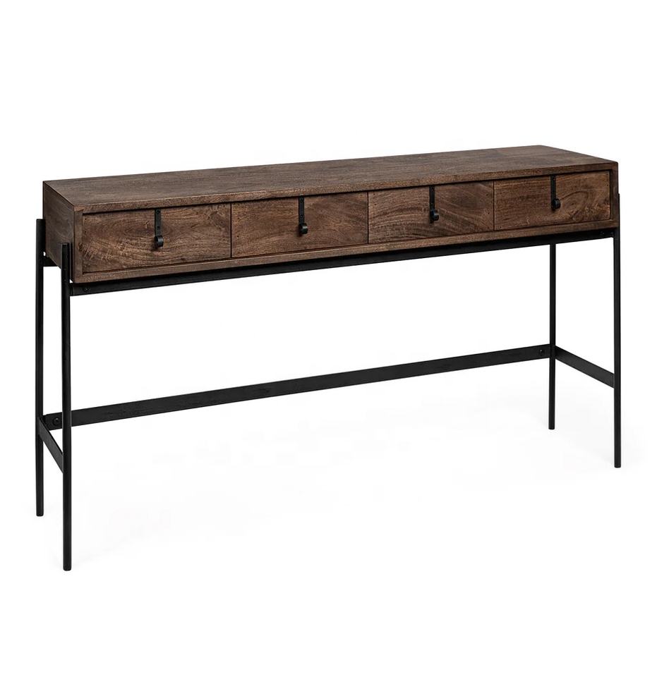 โต๊ะคอนโซลอุตสาหกรรมทันสมัยลิ้นชักไม้มะม่วง4ชั้นฐานเหล็กเคลือบผงโลหะเฟอร์นิเจอร์ห้องโถงห้องนั่งเล่น