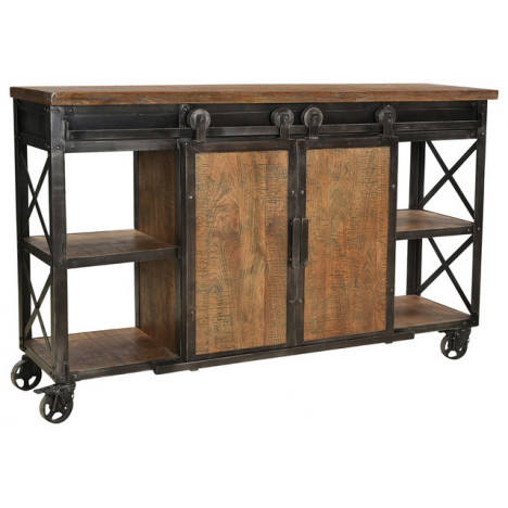 ตู้ไม้มะม่วงแบบมินิมอลลิสต์สำหรับอุตสาหกรรมสมัยใหม่หรูหราตู้บุฟเฟ่ต์ประตูบานเลื่อนล้อกลิ้งเหล็กสำหรับห้องครัวโรงแรม
