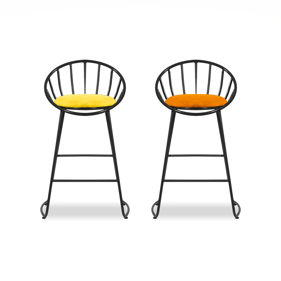 เก้าอี้บาร์โลหะสไตล์โมเดิร์น พร้อมเบาะผ้า เก้าอี้สูงสำหรับเคาน์เตอร์ครัว เก้าอี้สำหรับร้านกาแฟ บิสโทร เฟอร์นิเจอร์ผลิตในตุรกี