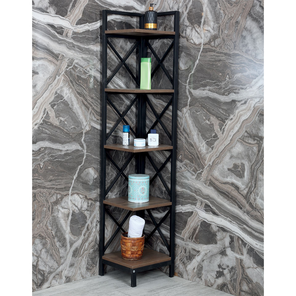 ชั้นวางของโลหะอุตสาหกรรมสมัยใหม่ โครงไม้ 5 ชั้น สำหรับจัดเก็บหนังสือ ตกแต่งห้องนั่งเล่นและสำนักงาน