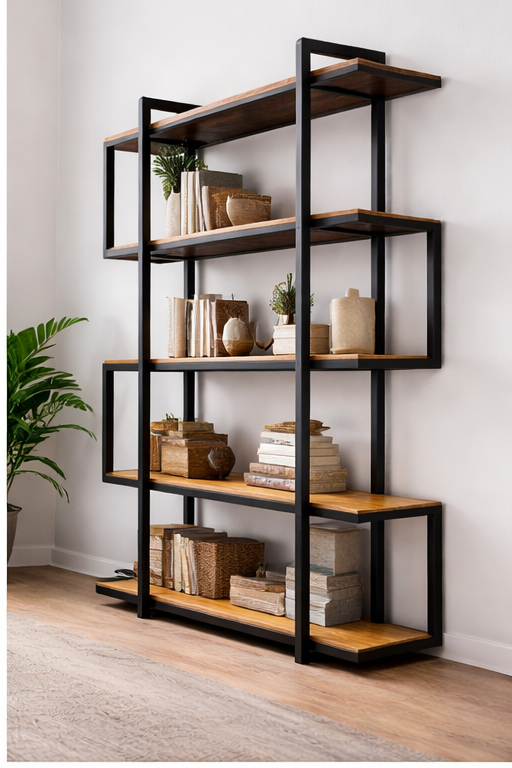 ชั้นวางหนังสือโลหะและไม้สไตล์โมเดิร์น โครงโลหะ + ชั้นวาง MDF / ไม้จริง ชั้นวางแบบซ้อนกัน คุณภาพสูง