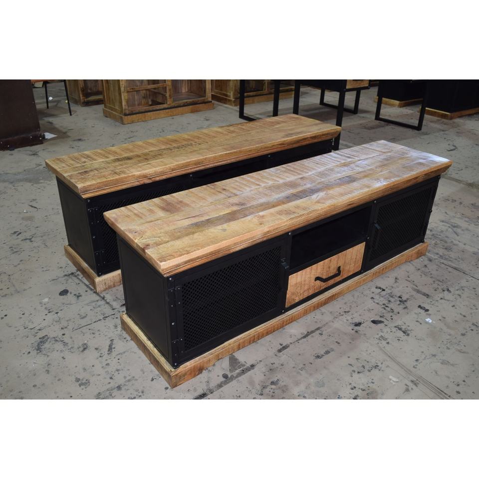 ตู้ขาตั้งทีวีไม้เนื้อแข็งแบบขยายได้สไตล์อุตสาหกรรมที่ทันสมัยพร้อมที่เก็บของสำหรับห้องนั่งเล่นห้องนอนอพาร์ทเมนต์หรือวิลล่า