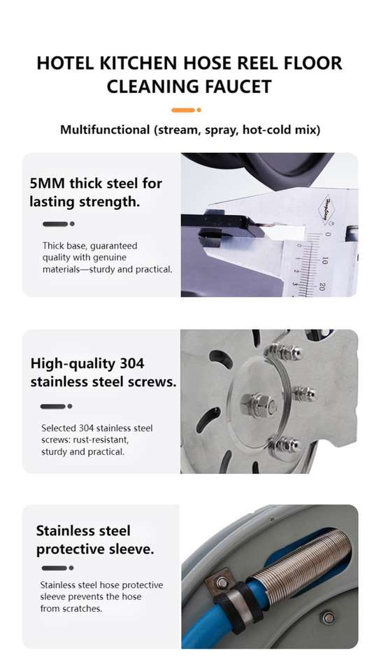 Modern Industrial Wall Mount Enclosed Epoxy-Coated Steel Retractable Open Hose Reel 10M High Pressure Irrigation Kitchen Faucets