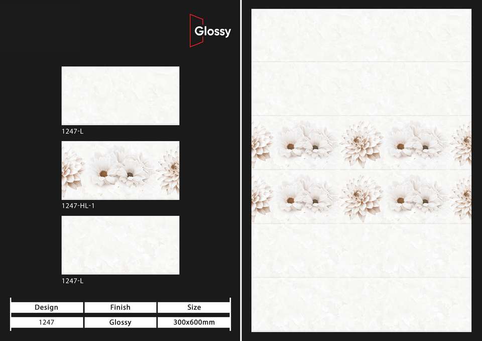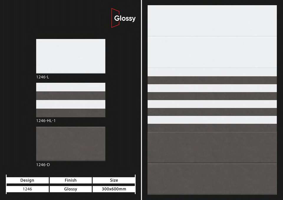 กระเบื้องบุผนังเซรามิกผิวมันเงาขนาด 12x24 นิ้ว (300x600 มม.) สไตล์โมเดิร์น สำหรับตกแต่งผนังห้องน้ำและห้องครัวอย่างสวยงาม