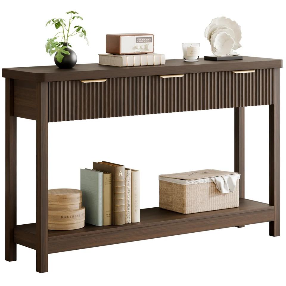 โต๊ะโซฟาเหล็กดีไซน์ทันสมัยพร้อมลายริบบิ้นและชั้นวางของด้านล่างสำหรับห้องนั่งเล่นหรือทางเข้าบ้าน