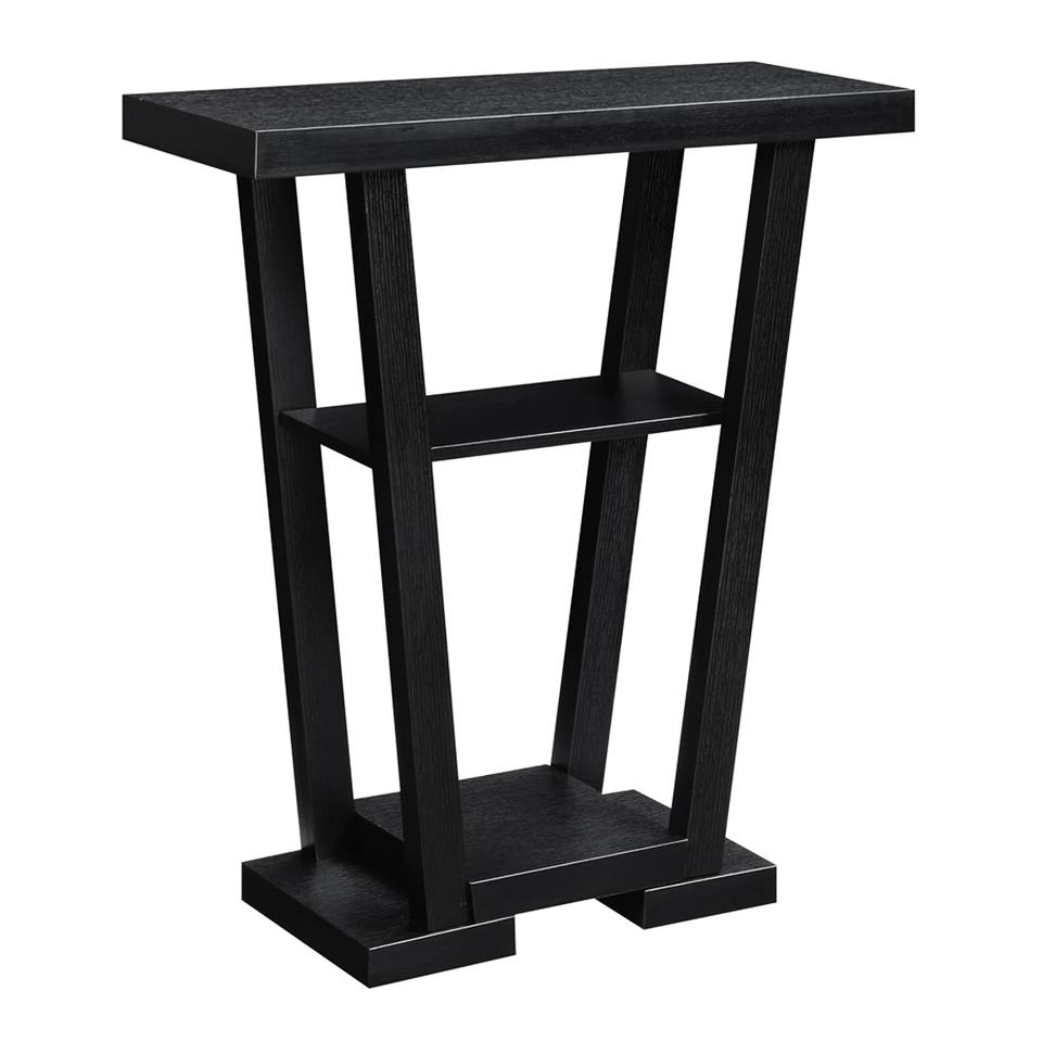 โต๊ะคอนโซลเหล็กสไตล์โมเดิร์นพร้อมฐานทรงเฉียงและชั้นวางแบบเปิดสำหรับห้องนั่งเล่นในอพาร์ตเมนต์