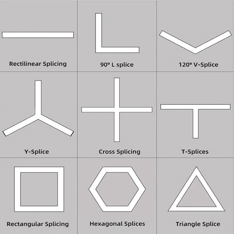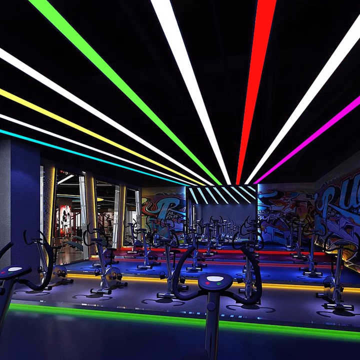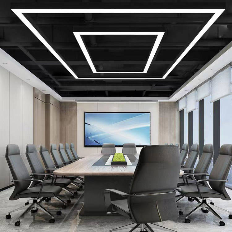 โคมไฟเพดานเหล็กทรงสี่เหลี่ยมทันสมัย โคมไฟห้อยทรงหลอดยาวตกแต่ง ไฟ LED เชื่อมต่อได้ สำหรับสำนักงาน ร้านค้า โรงยิม