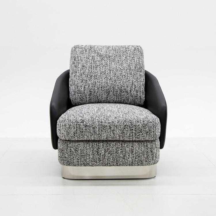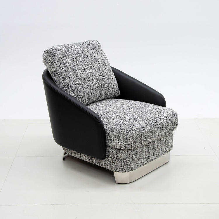 โซฟาหนังอิตาลีสมัยใหม่ ผ้าหุ้มขาเหล็กสแตนเลส ดีไซน์เก้าอี้พักผ่อน สำหรับห้องนอน วิลล่า สไตล์มินิมอล หรูหรา ผ่อนคลาย