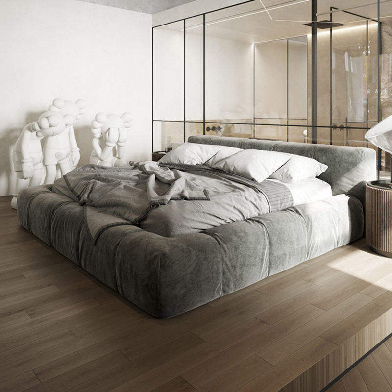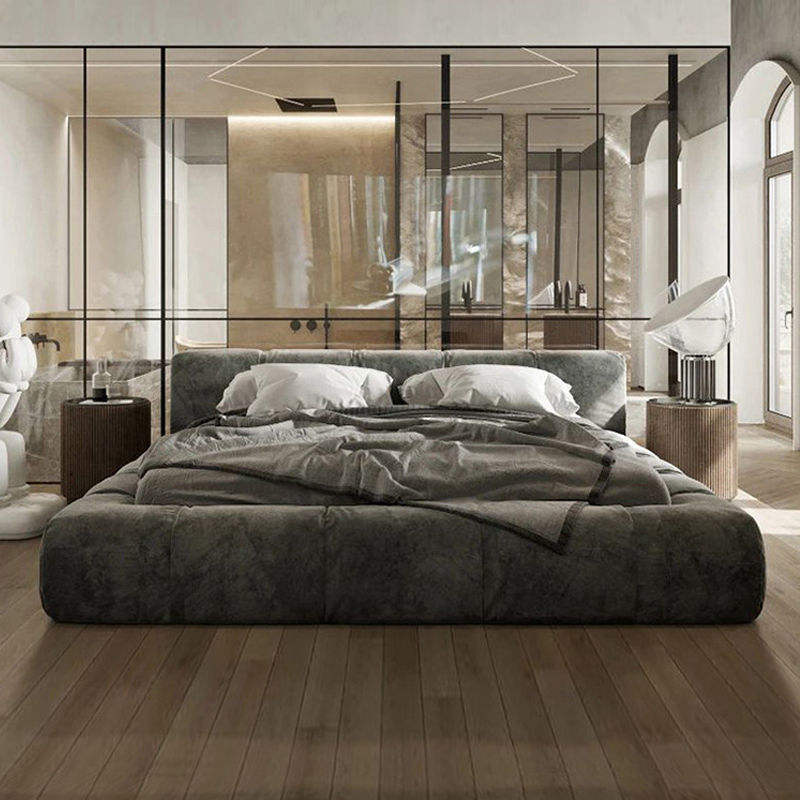 เตียงผ้าสไตล์มินิมอลจากอิตาลีดีไซน์หุ้มเบาะสี่เหลี่ยมสำหรับห้องนอนเตียงคู่ขนาดคิงไซส์