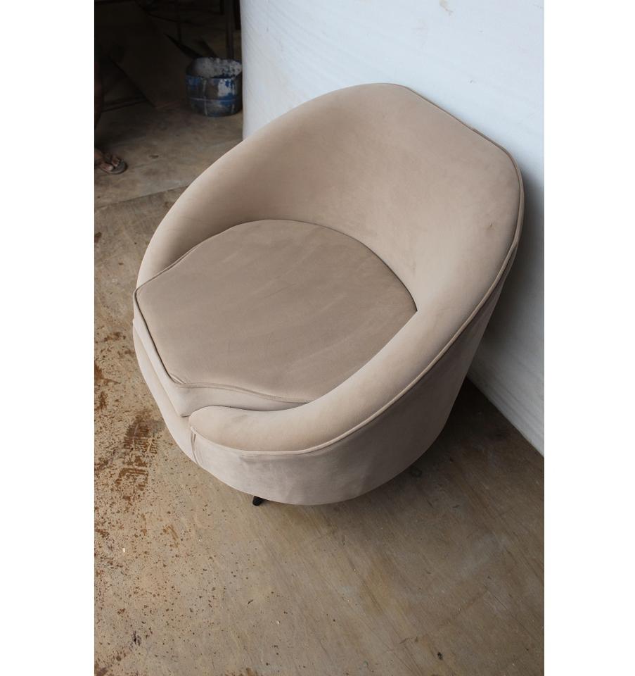 เก้าอี้เลานจ์แบบที่นั่งเดี่ยวสไตล์อิตาลีที่ทันสมัยเก้าอี้ผ้าโครงสร้างไม้เบาะฐานโลหะหมุนสำหรับห้องนั่งเล่น