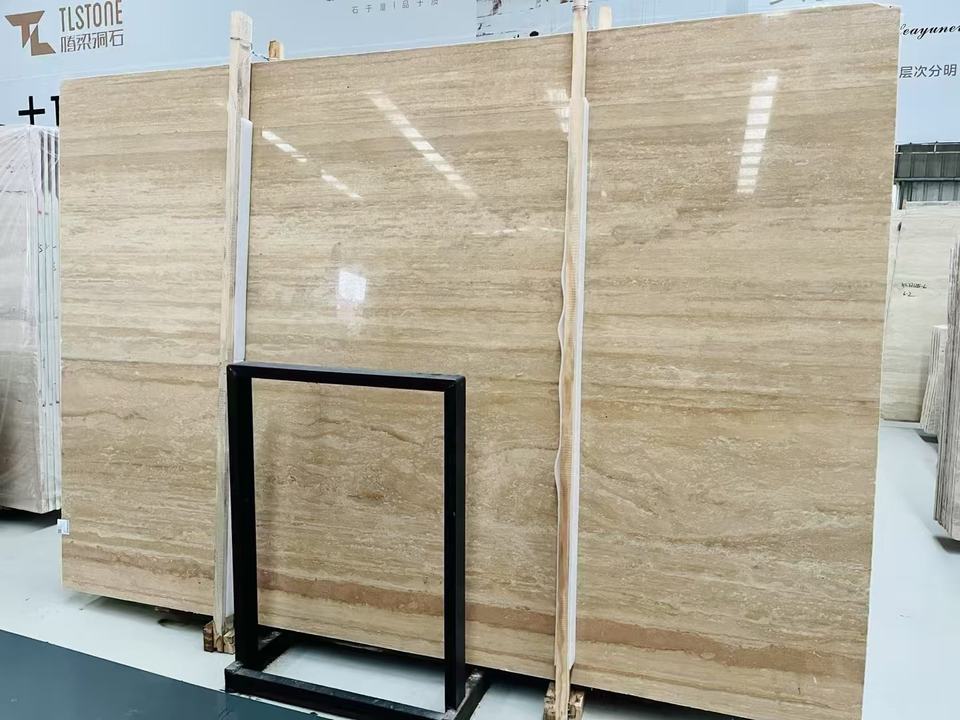 กระเบื้องหินอ่อนอิตาลีสมัยใหม่ สีเบจธรรมชาติ ผิวขัดเงา ตัดตามขนาด สำหรับใช้ภายในอาคาร โรงแรม และวิลล่า ขายส่ง
